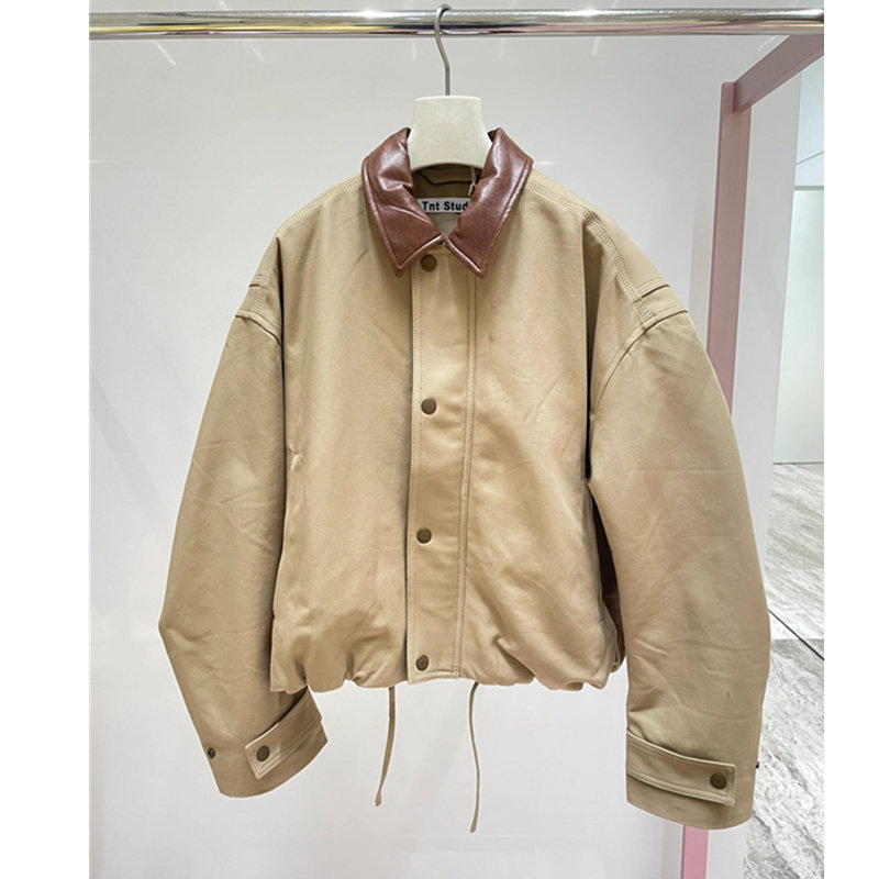 BLSGGTVT 25SS leather collar camel color male and female couple padded jacket jacket trend