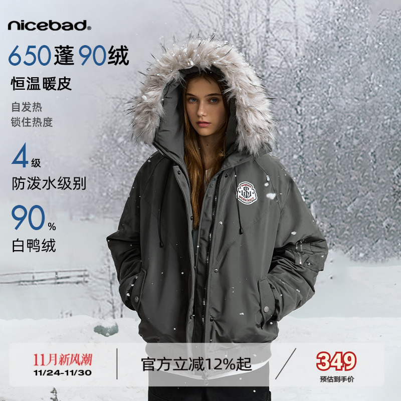 NICEBAD detachable fur collar hooded parka cotton jacket trendy warm down jacket