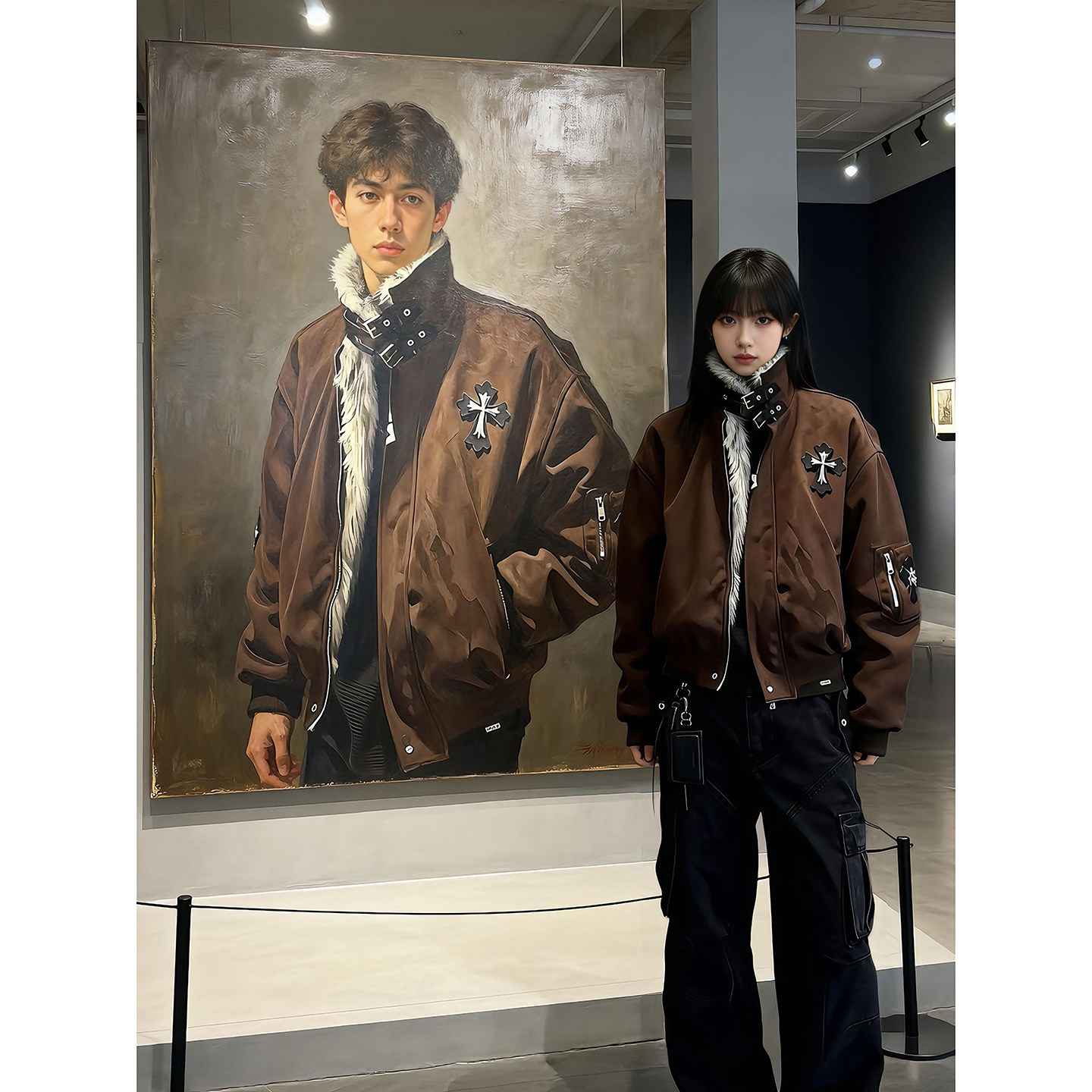 MRNEARLY American niche matte PU fur collar cotton jacket men's winter mountain carving thickened couple cotton jacket