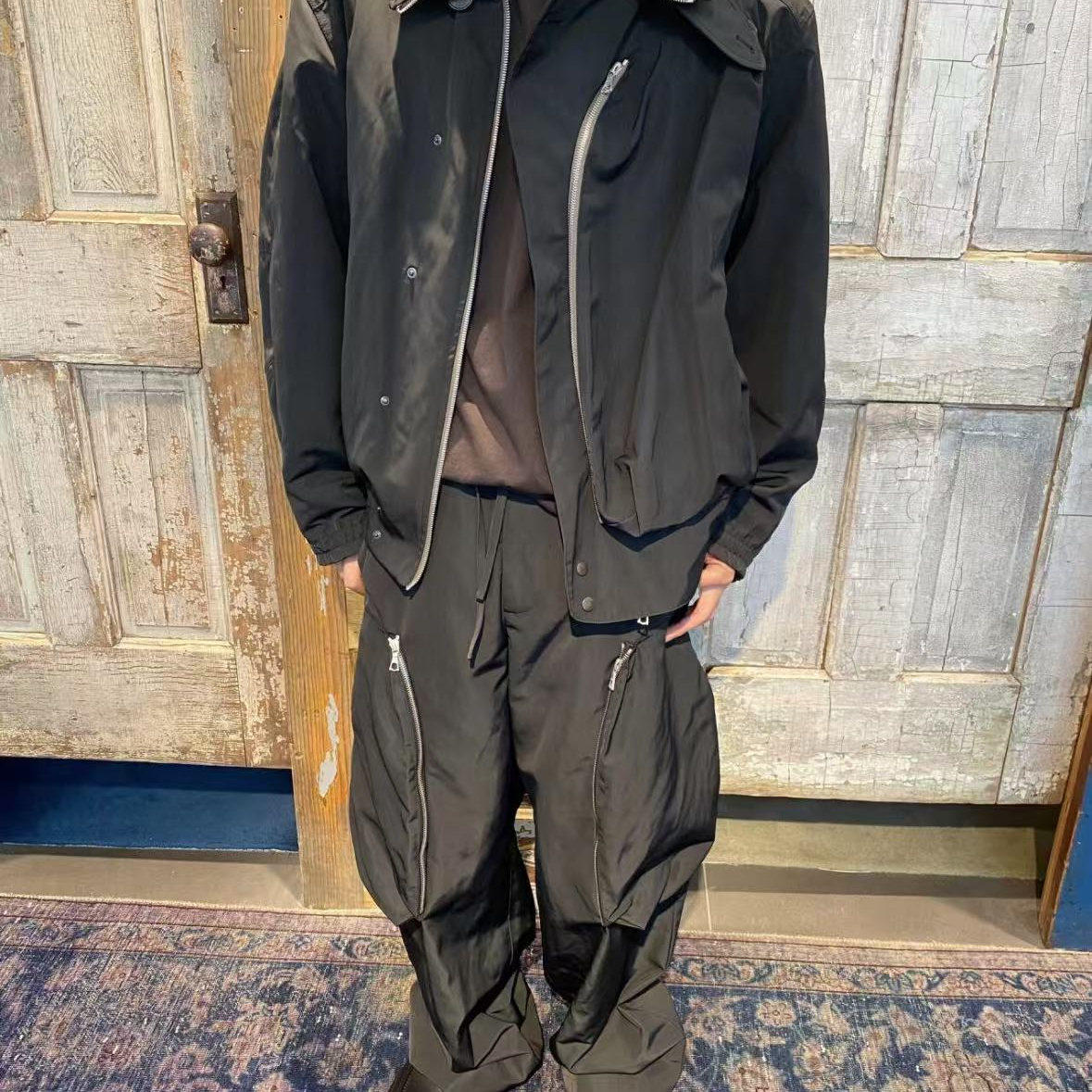 MAT JENIN Detachable Sleeve Airplane Buckle Padded Bomber Silhouette Cut Chunky Bomber Jacket Men