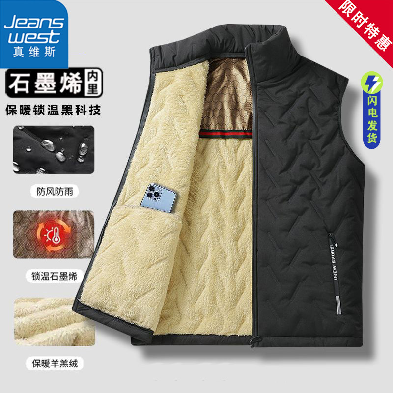 Zhenweisi 2025 Lamb Velvet Men's Autumn and Winter Fleece Thickened Middle-aged and Elderly Dad Vest Jacket