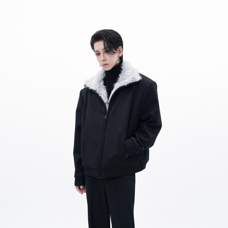 HARH "Moonless Night" original mountain carving fleece cotton jacket fur jacket stand-up collar shoulder pad padded jacket plush jacket