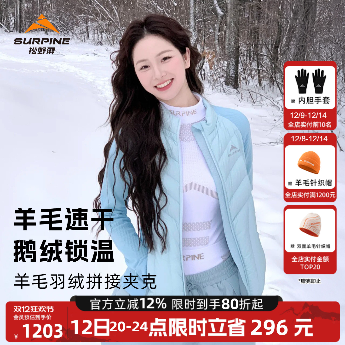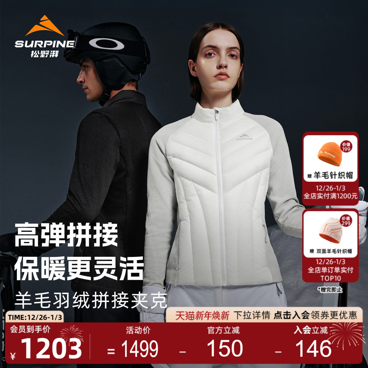 SURPINE Matsuno Pamerino wool knit down liner mid-layer women's warm ski jacket goose down