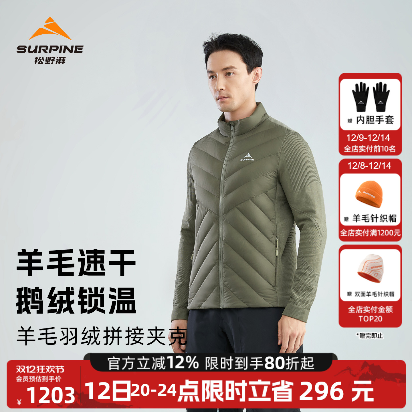 SURPINE Matsuno Pamerino wool knit goose down jacket liner ski midlayer jacket