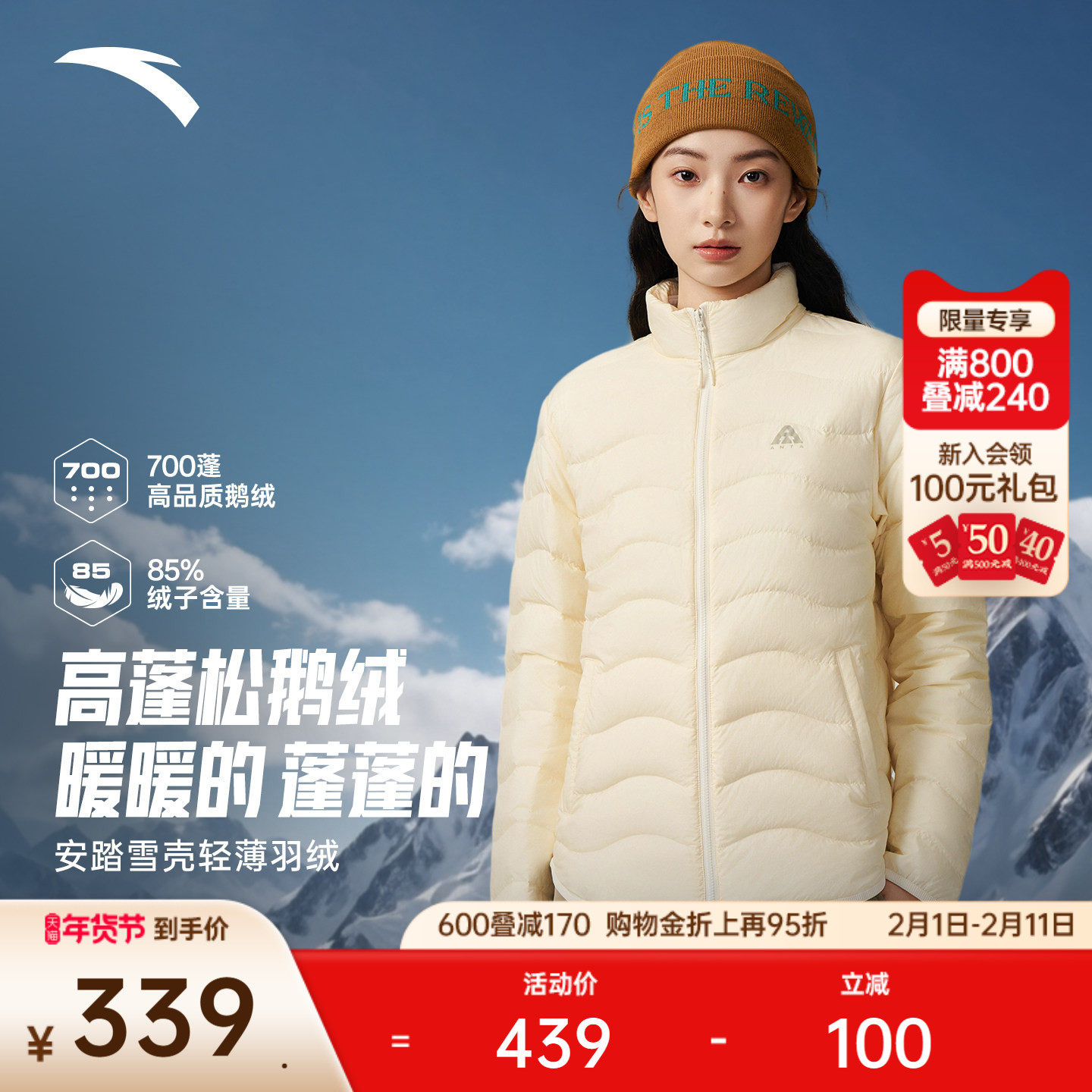 Anta rib down jacket, quilted goose down, light feather girl, winter outdoor slim warm liner casual top