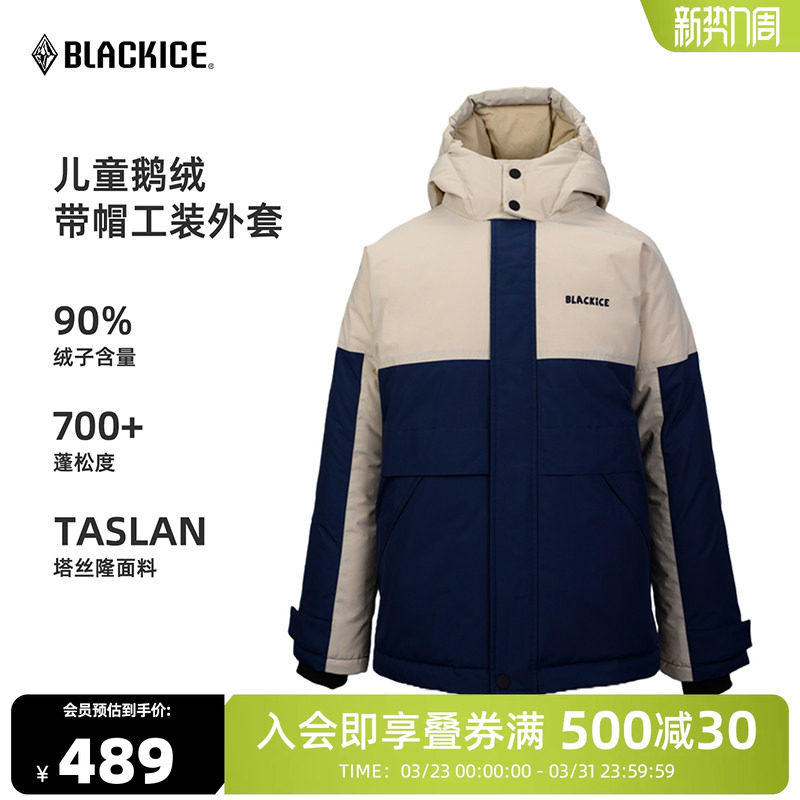 Black ice children's down jacket for men and women, middle and large children, autumn and winter 700 fluffy white goose down outdoor hoodie jacket 9121