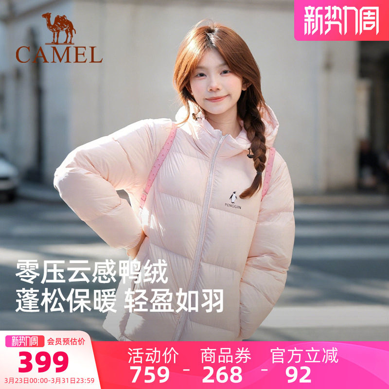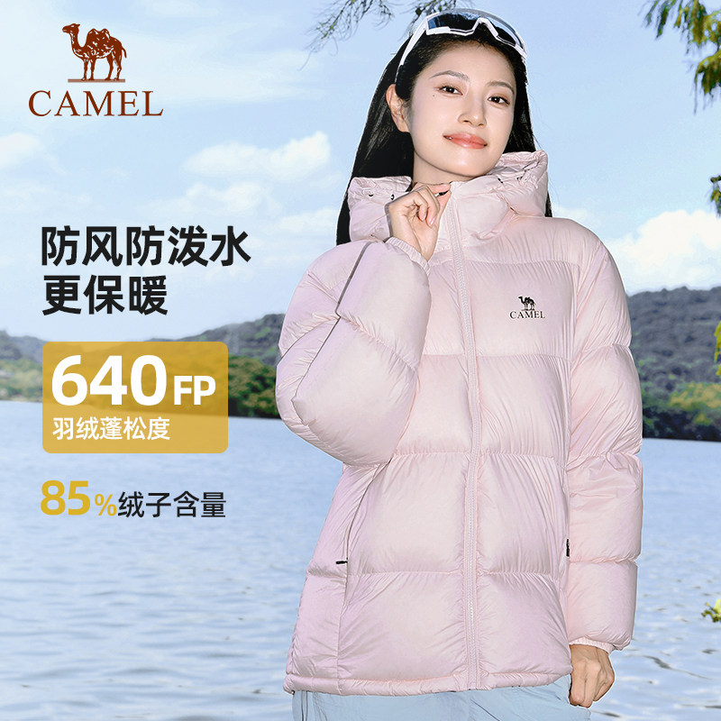 Camel women's pink down jacket short outdoor water-repellent down jacket men's and women's 2026 warm jacket bread jacket
