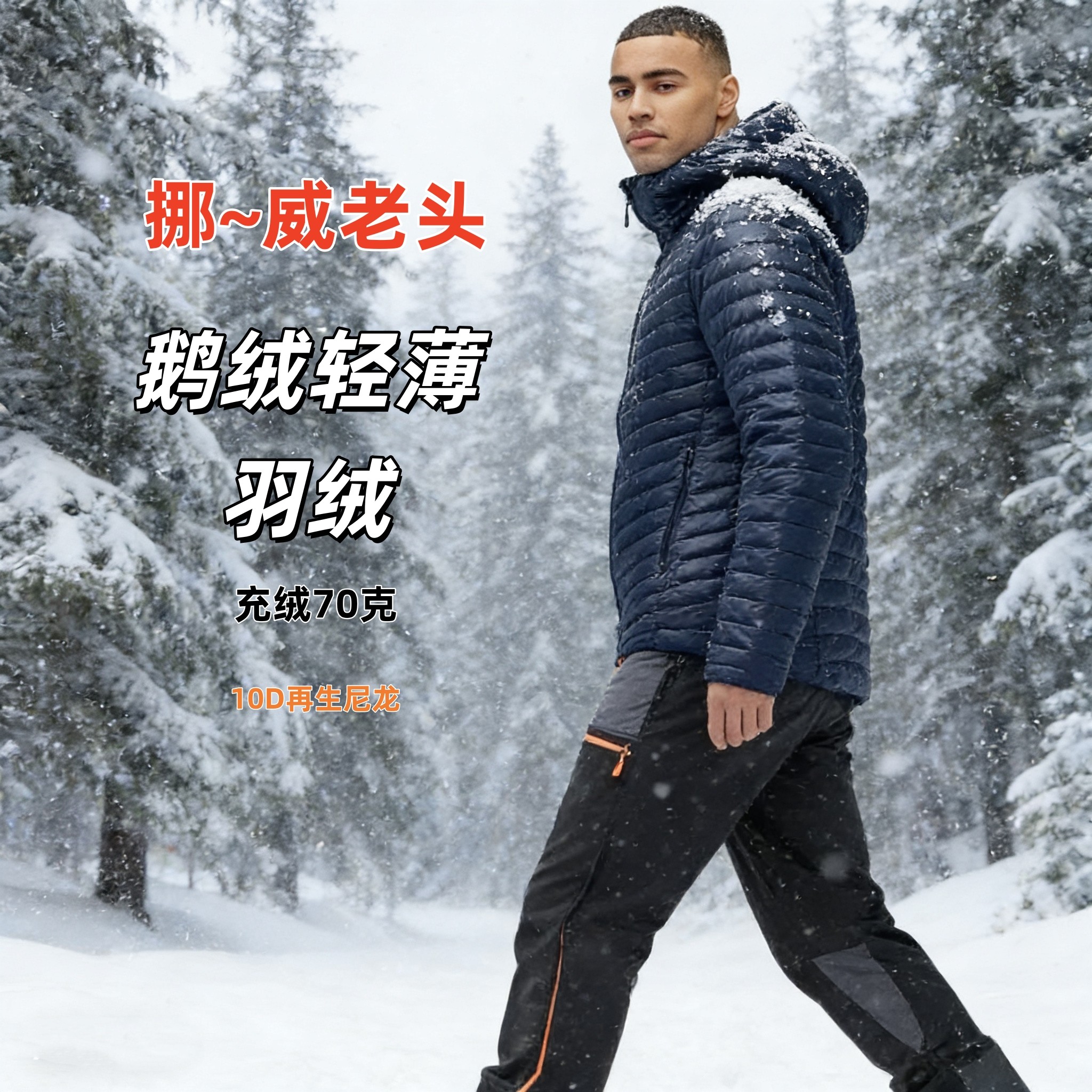 Norwegian Men's Outdoor Commuter Lightweight Thin Goose Down Hooded Down Jacket Rib Down Jacket 850 Fluffy
