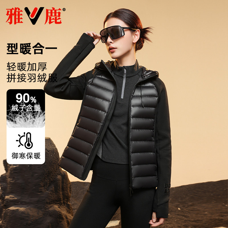Yalu black gold light down jacket women's 2025 winter new duck down warm commuter thickened hooded down jacket