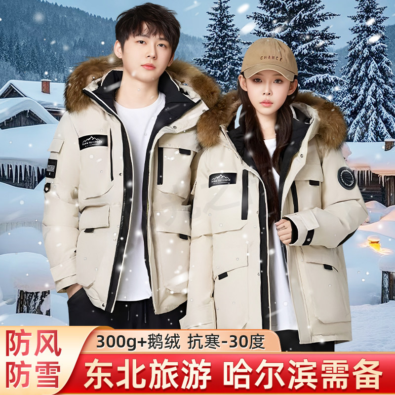 Northeast down jacket men's and women's winter Mohe snow outdoor Harbin snow town tourism warm equipment cold protection clothing