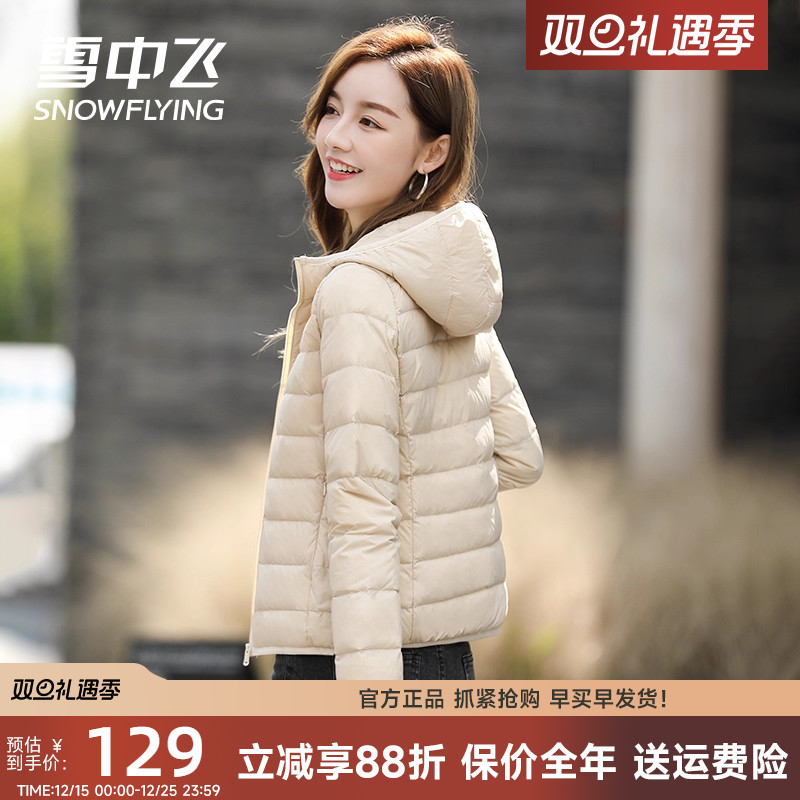 Fly in the snow light down jacket women's short 2025 new hooded stand-up collar outdoor fashion thin autumn and winter jacket