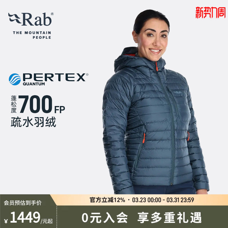RAB Microlight Women's 700 Puff Lightweight Down Jacket Warm Windproof Slim Fit Hood QDB-13