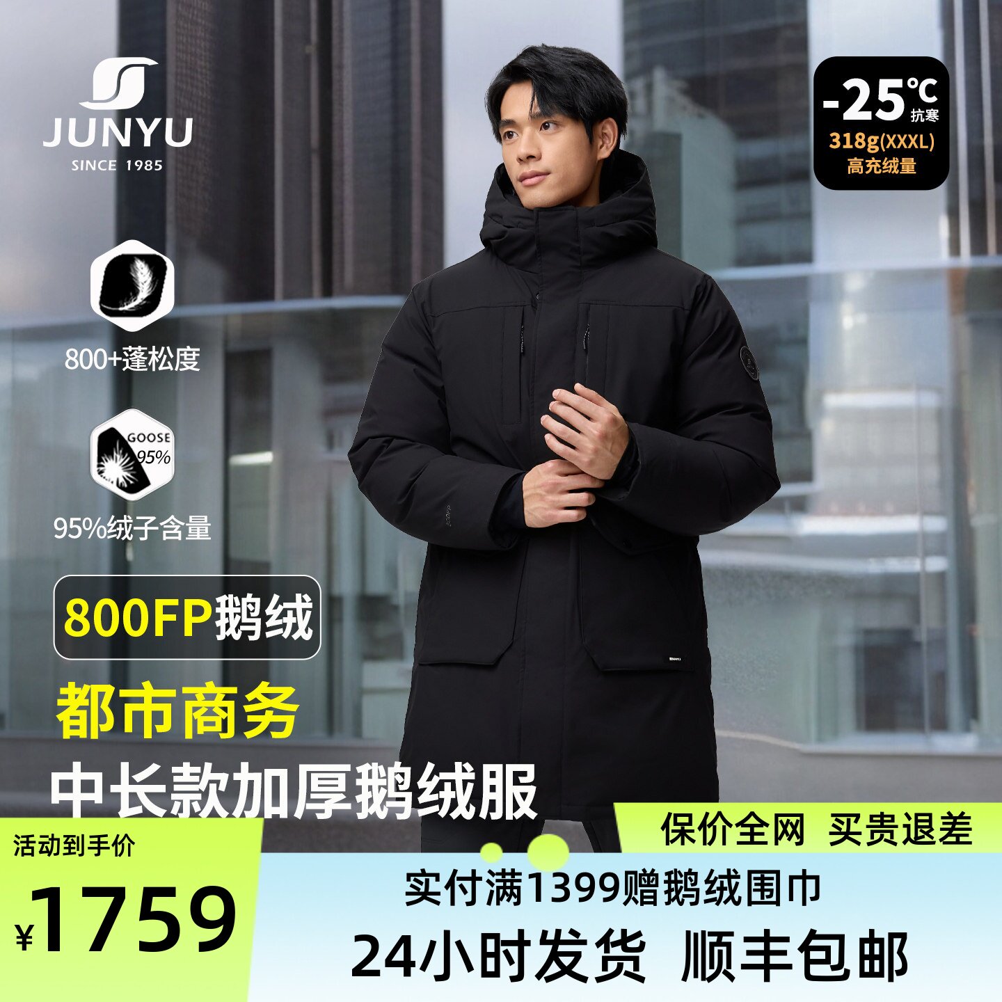 Junyu 800 puff down jacket men's mid-length model 2025 new winter thickened and warm business goose down jacket men's 337