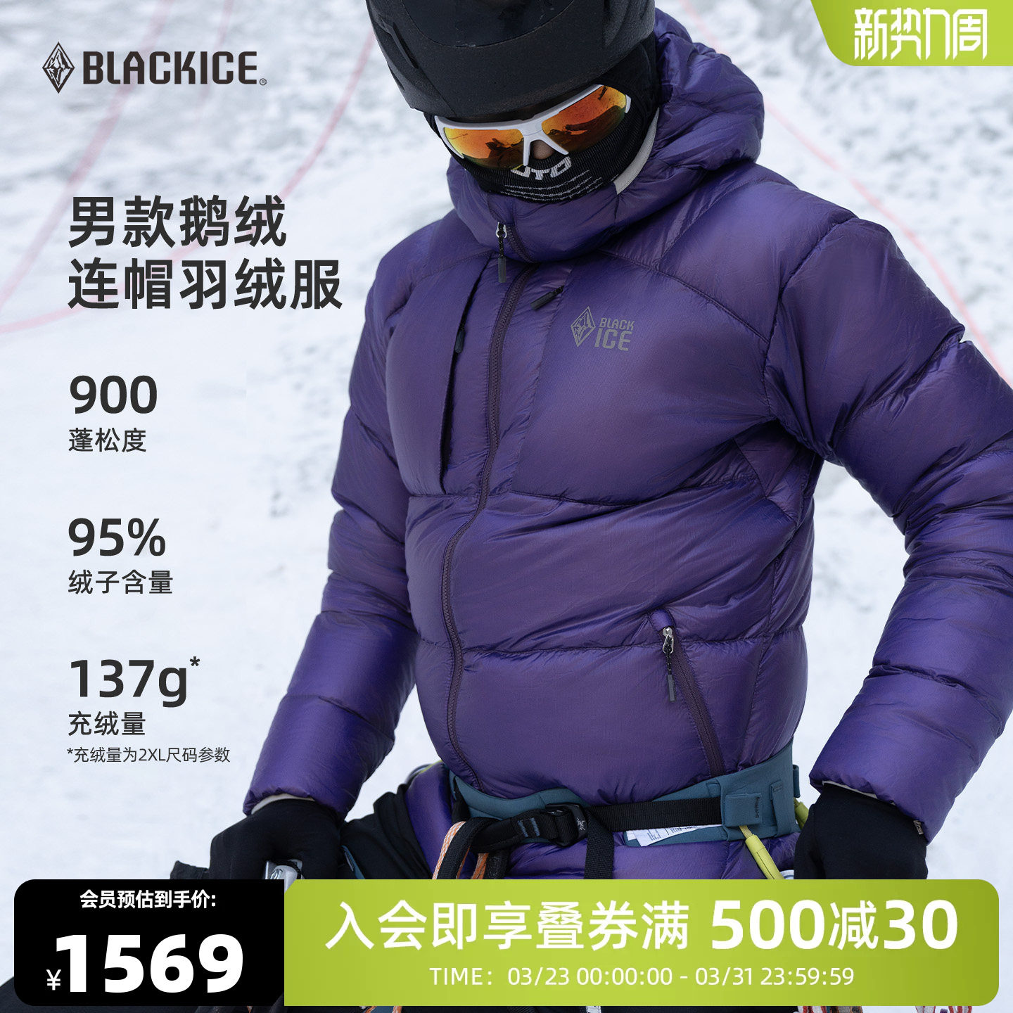 Black ice outdoor goose down jacket men's winter 900 puff warm lightweight down jacket hooded jacket 8605