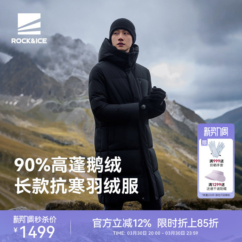 ROCKICE Long Down Jacket Men's New Goose Down Jacket Outdoor Windproof and Cold-proof Thickened Warm Casual Down Jacket