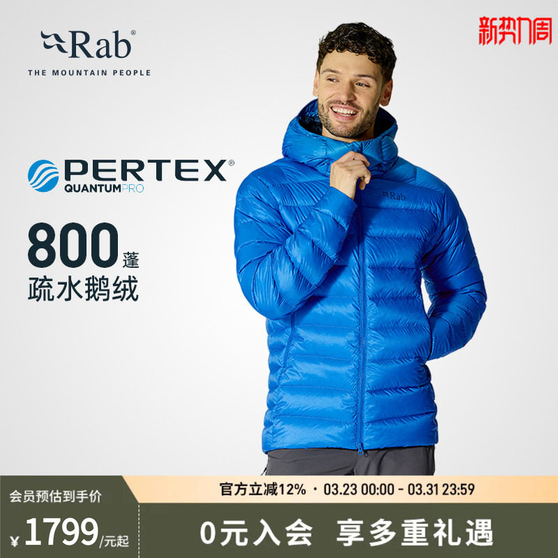 RAB Electron Pro Autumn & Winter Men's 800 Puff Lightweight Goose Down Hooded Pork Rib Down Jacket QDB-81