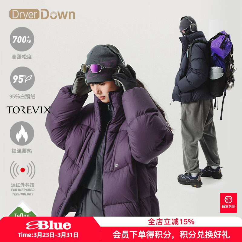 Lanqi winter outdoor four bags of 95 white goose down purple bread jacket women's three-proof loose stand-up collar down jacket men