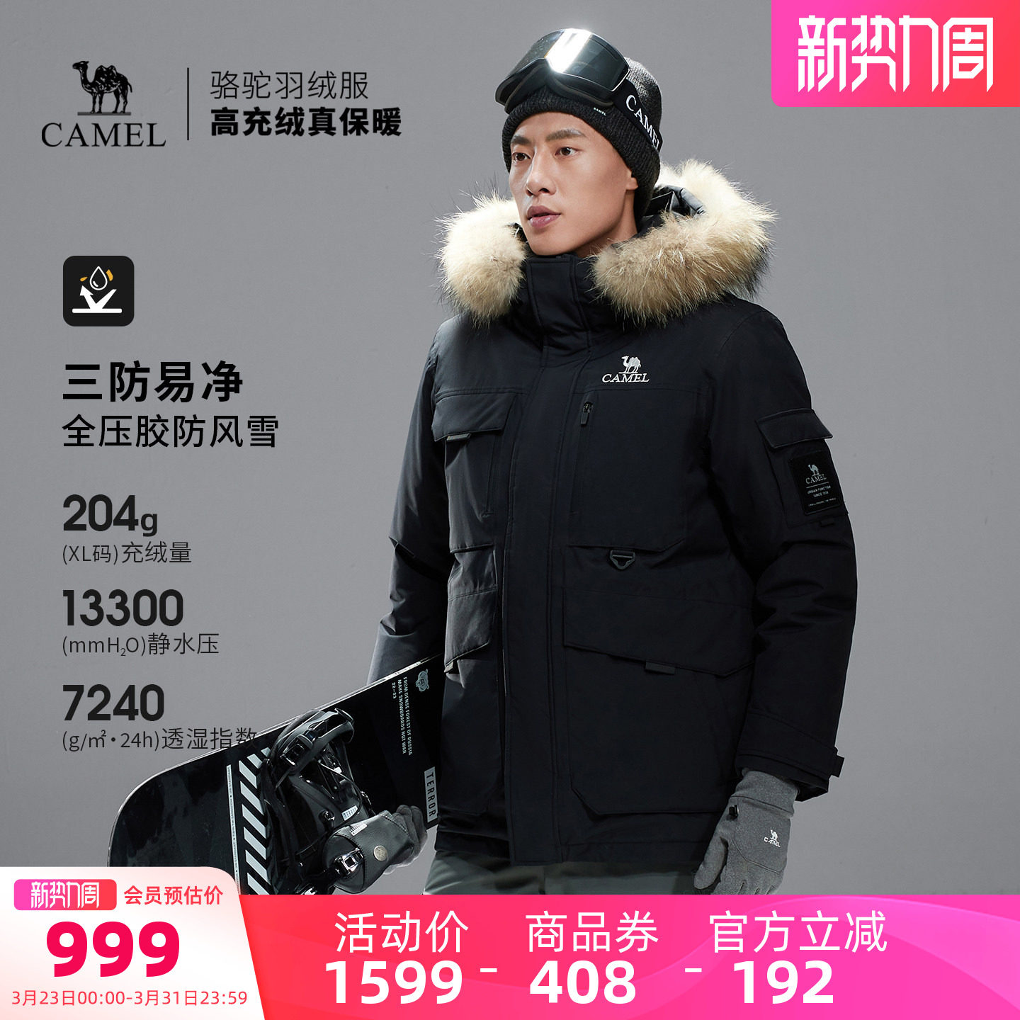 Camel outdoor down jacket winter new men's and women's thickened warm workwear fully pressed three-proof assault jacket