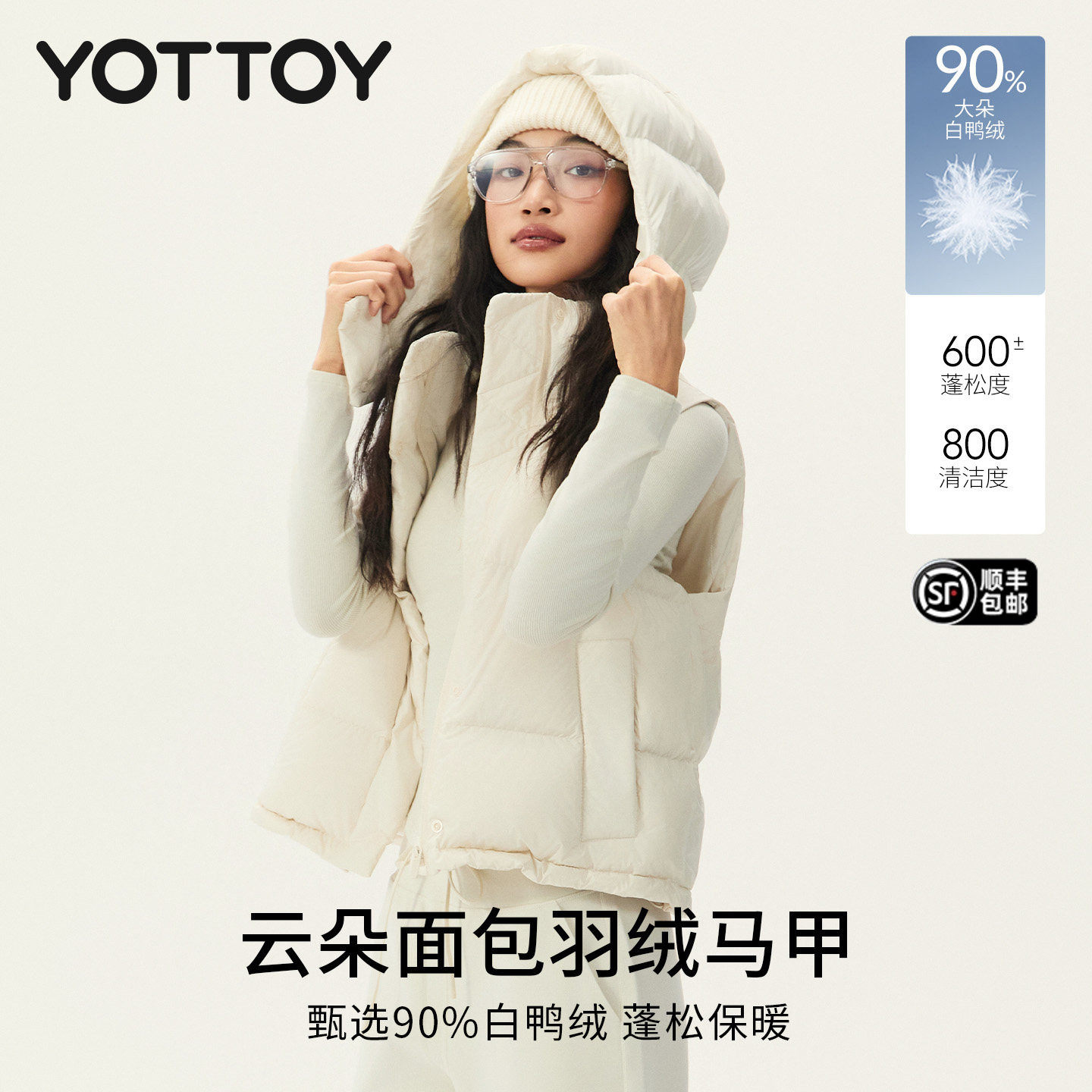 YOTTOY 90 white duck down cloud bread down vest women's loose light and light warm cotton jacket hooded winter