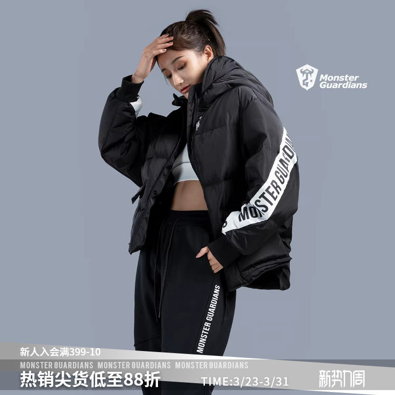 Monster Guardians White Duck Down Jacket Women's Cropped Hooded Jacket Winter Thickened Cotton Feather MSGD