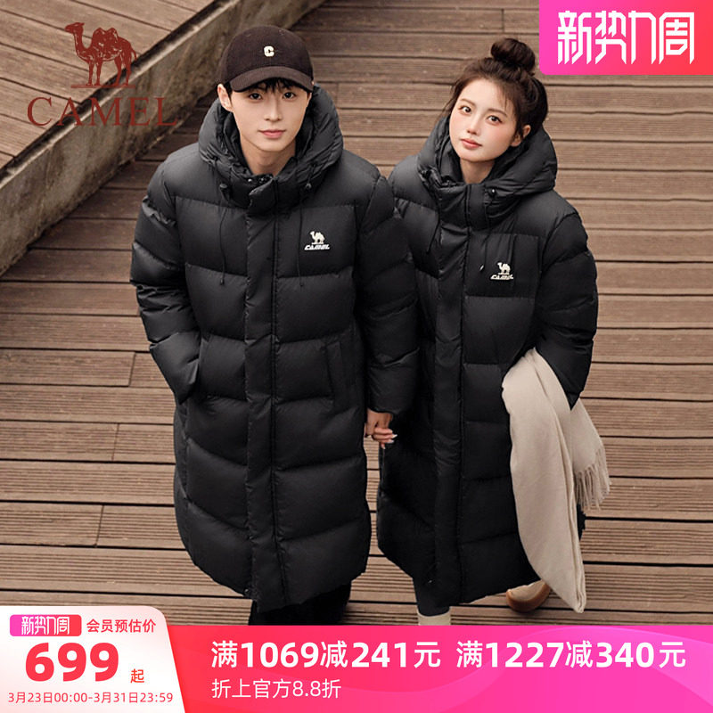 Camel sports mid-length down jacket for men 2025 winter new thickened warm water-repellent down jacket windproof jacket for women