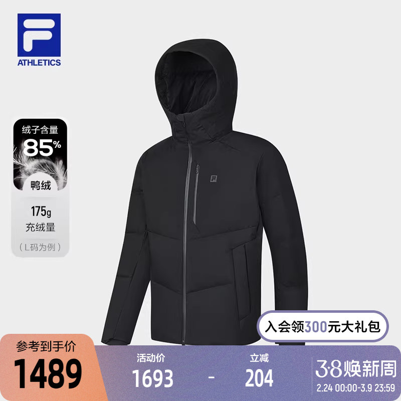 FILA Official Men's Down Jacket 2024 Winter New Fitness Sports Basic Hooded Warm Jacket
