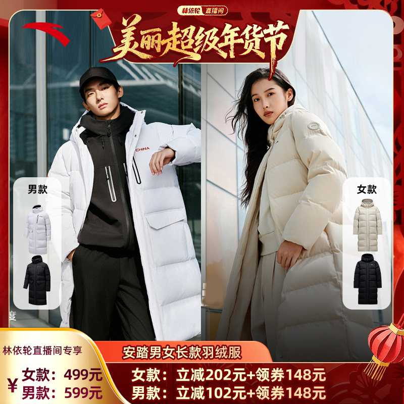 ANTA's water-repellent long sports down jacket for men and women's new duck down thickened warm jacket jacket for spring