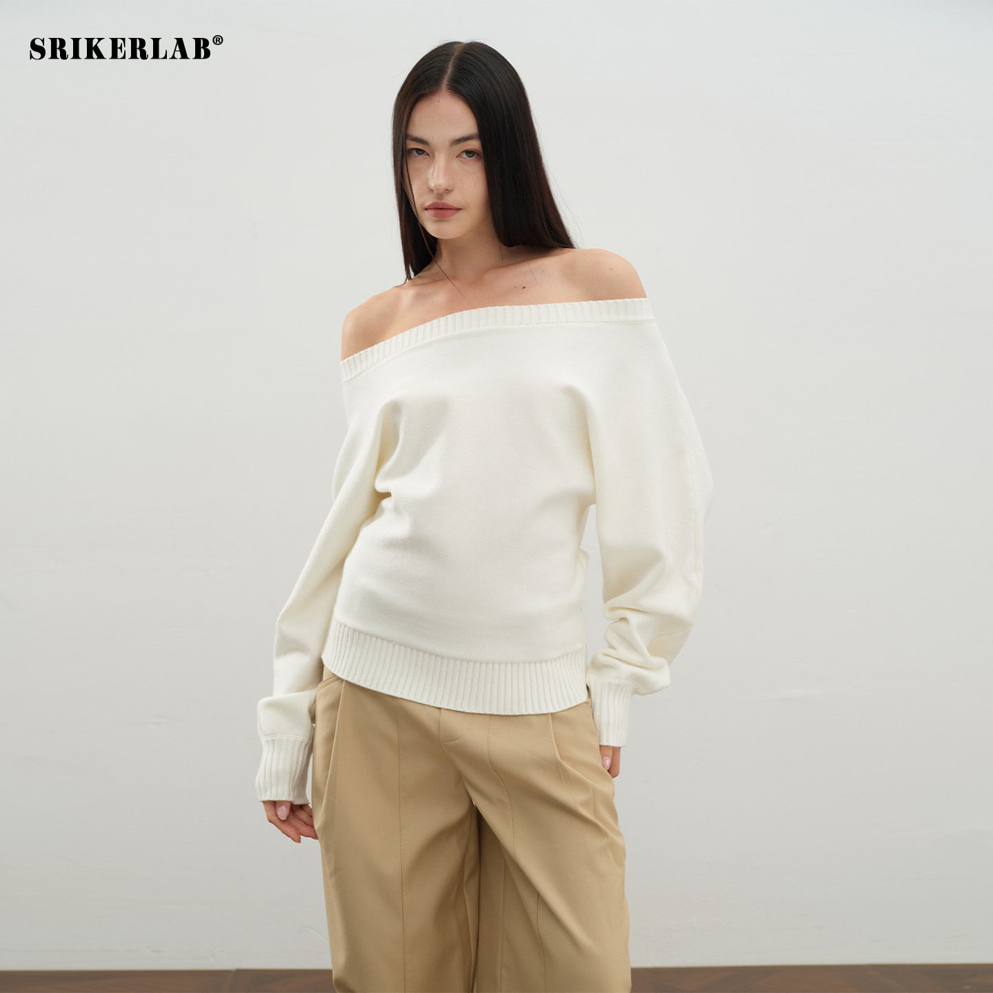 SRIKERLAB loose one-line off-the-shoulder sweater loose sophisticated slanted shoulder knit top thick women's style