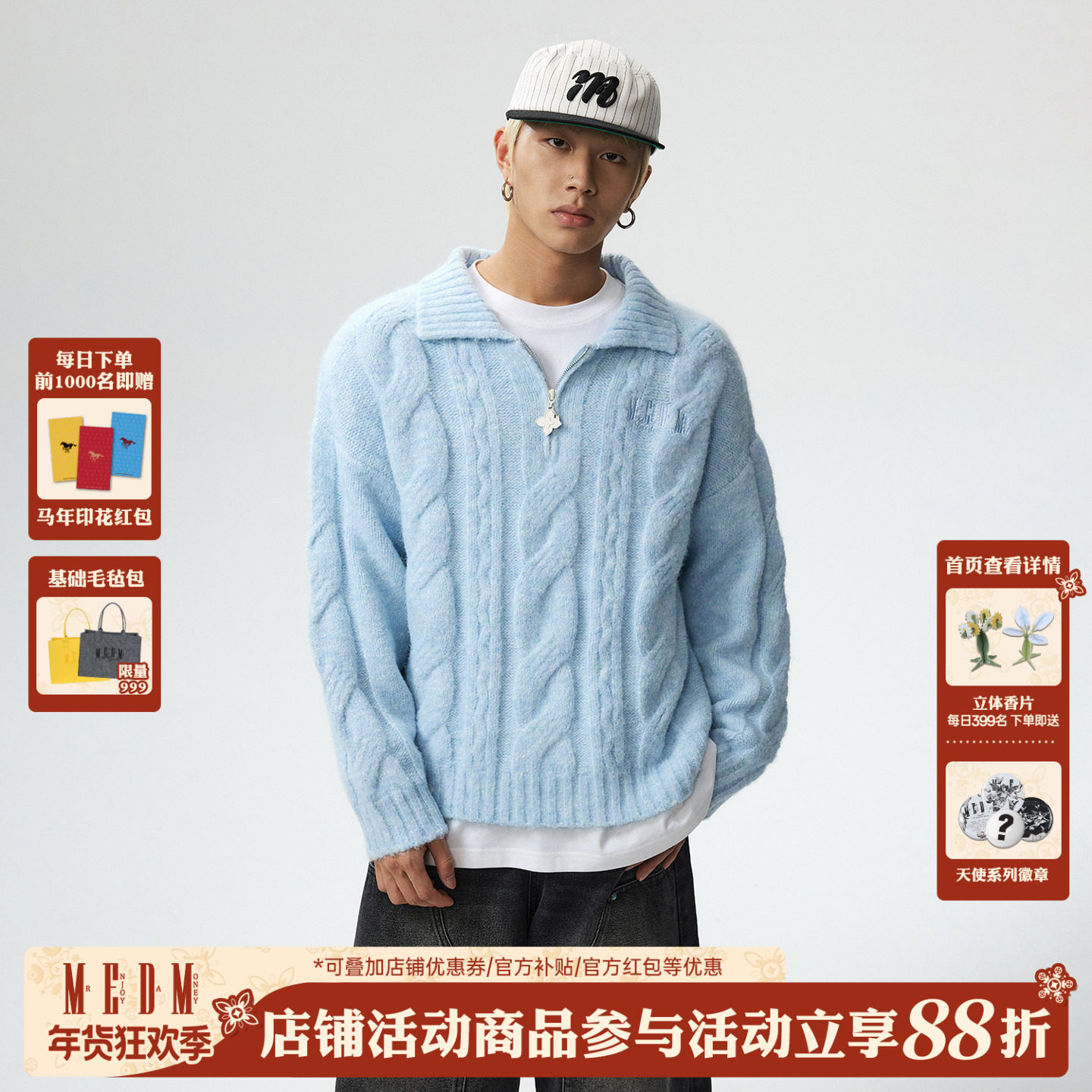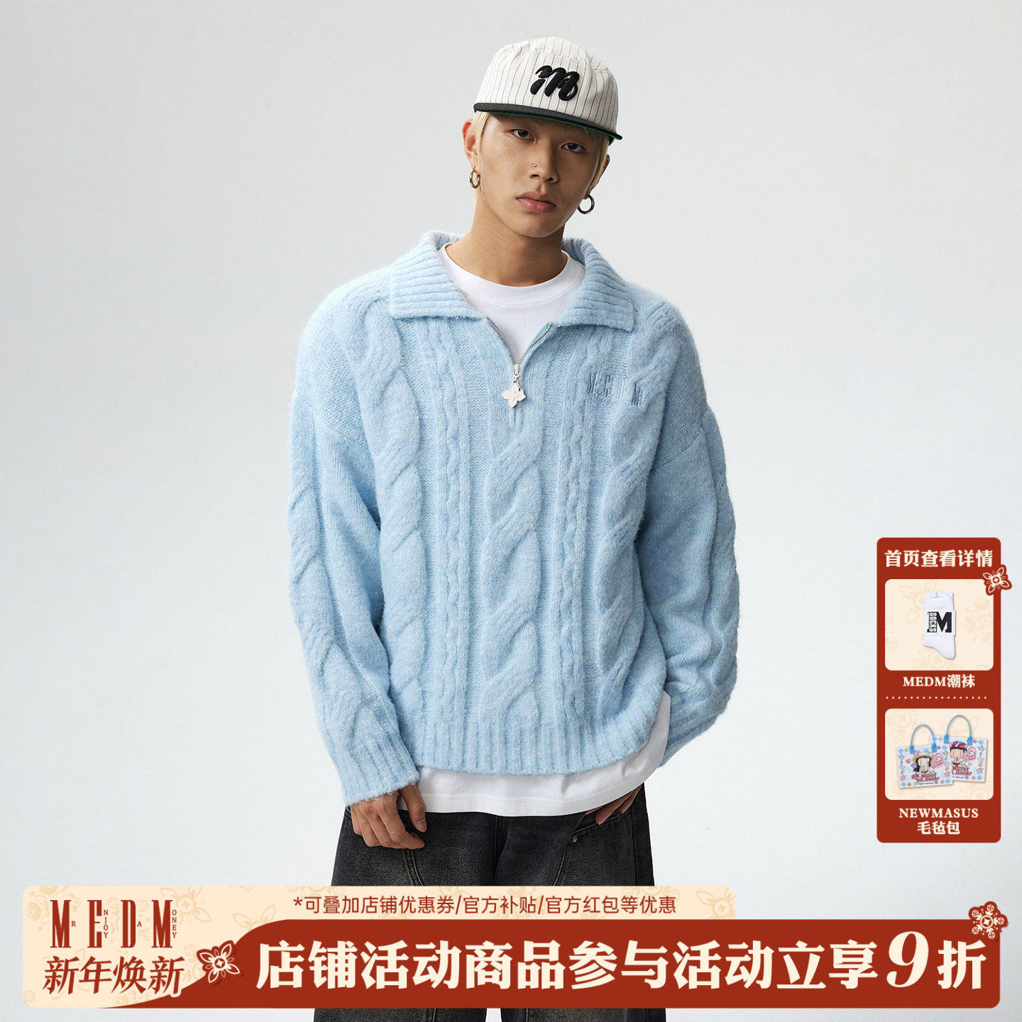 MEDM Twist Lapel Casual Sweater Jacket Men's and Women's Fall & Winter American Versatile Loose Couple Knit Top