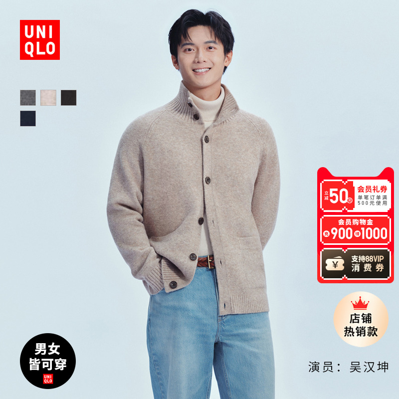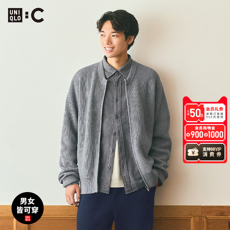 Uniqlo collaboration men's women's crew neck knitted cardigan long sleeve sweater sweater jacket 25 new 479731