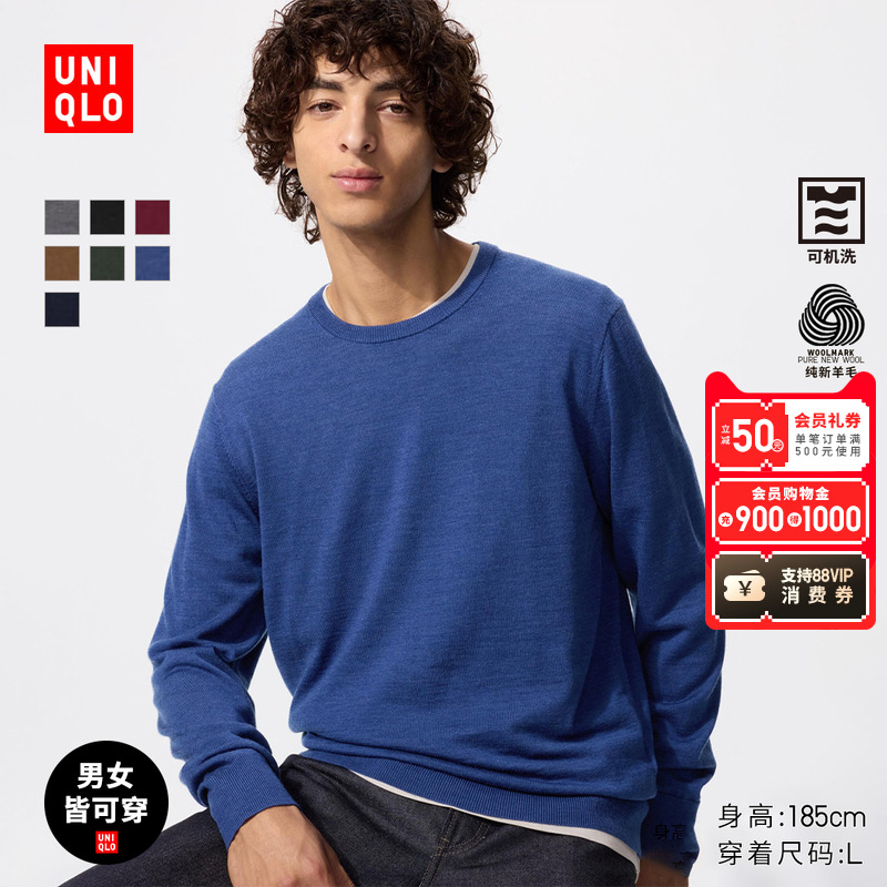Uniqlo collaboration men's and women's soft sheep wool crew neck knitwear long-sleeved sweater 25 fall/winter 479841