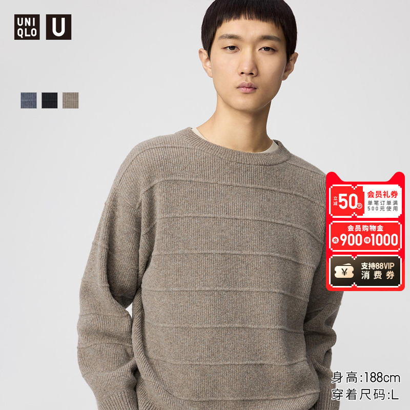 Uniqlo collaboration men's soft sheep wool crew neck knitted long sleeve sweater sweater 25 fall/winter 479832