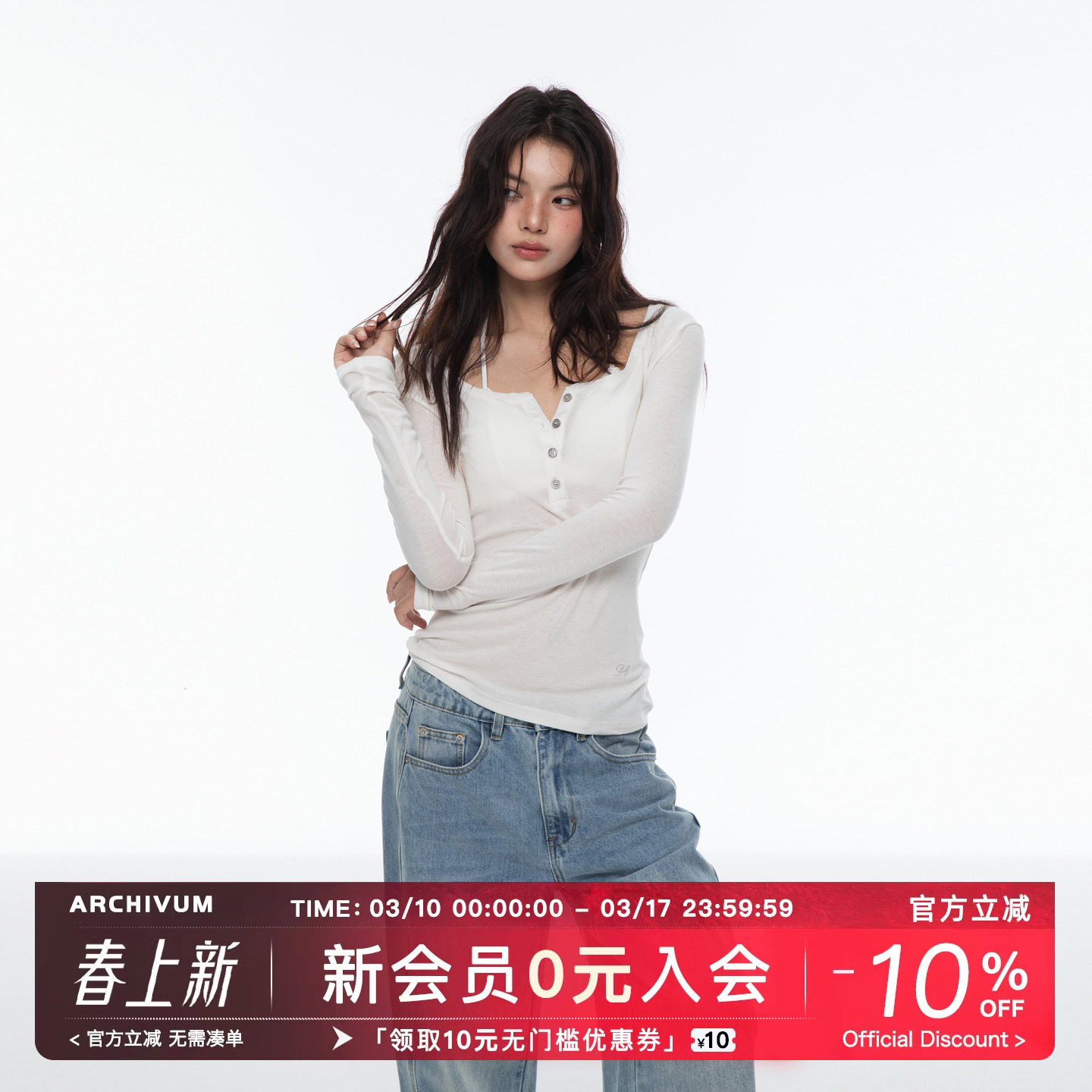 Archivum Lyocell Tencel wool blend U-shaped Henry long sleeve base top slim slim for autumn