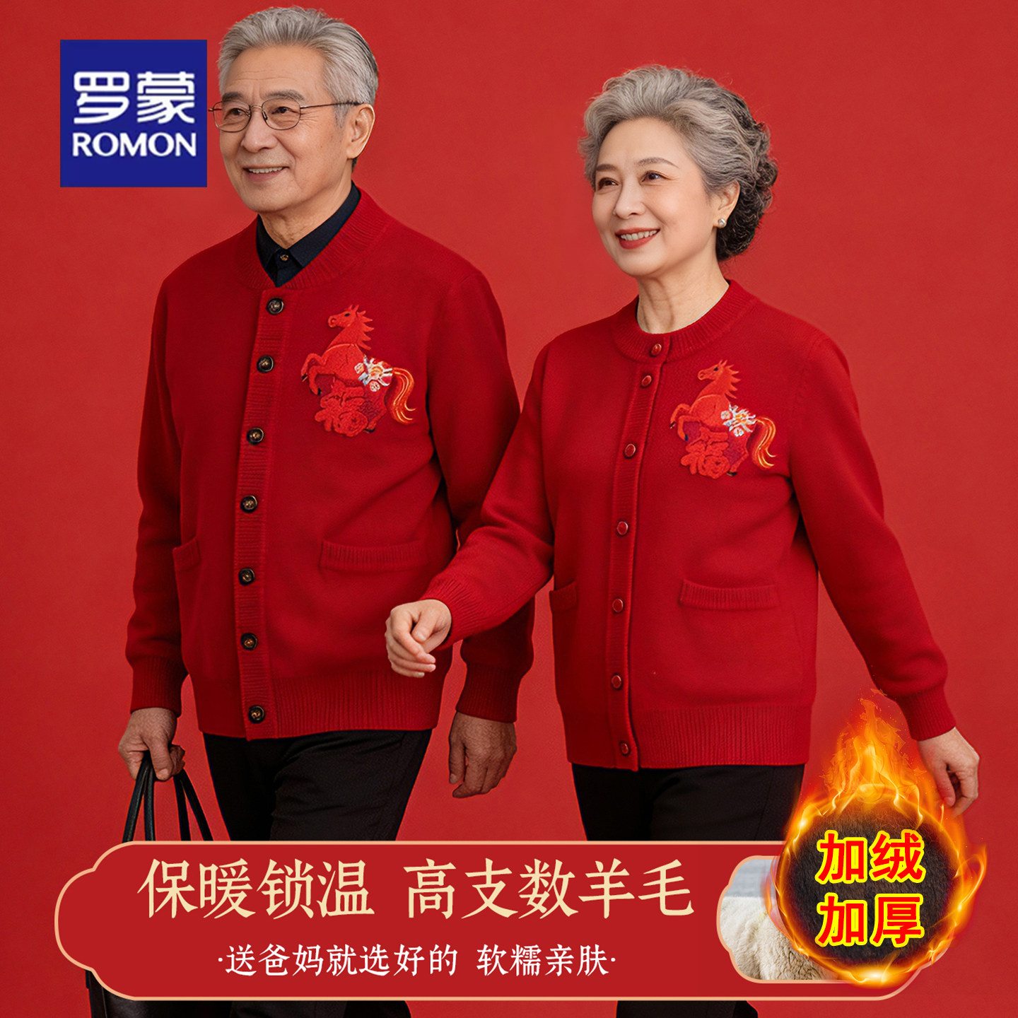 Lomond middle-aged and elderly sweater, natal year cardigan, cardigan, jacket, parents, red, festive clothes for the Year of the Horse in 2026
