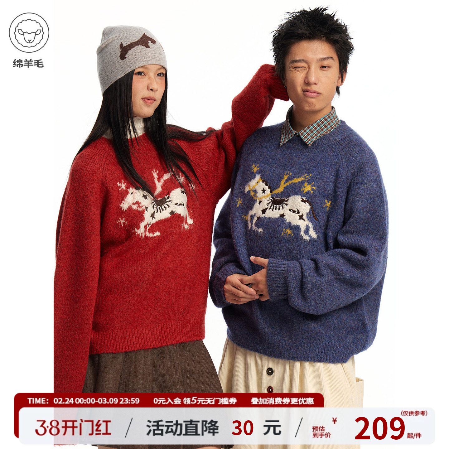 Mr. Jiangnan NewJNXS 'Soon has 'New Year's with wool' horse to success' round neck loose sweater for men and women