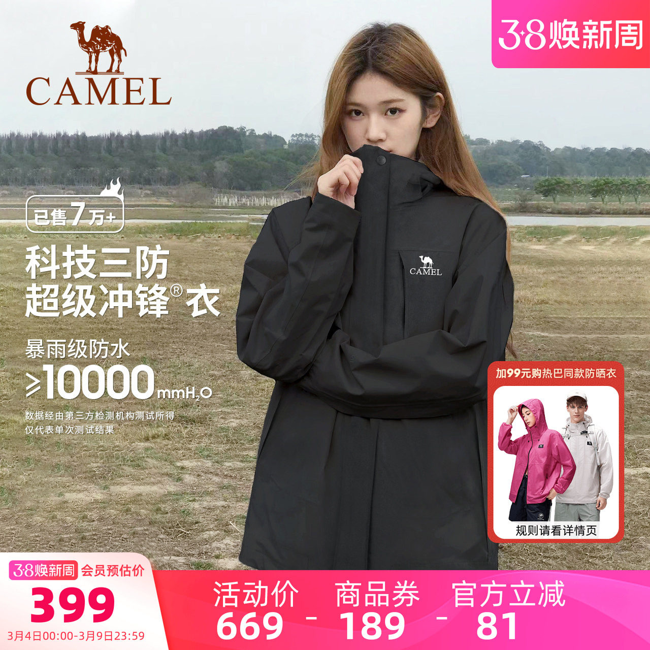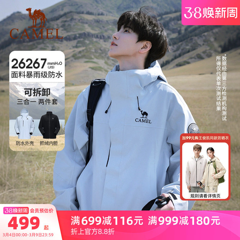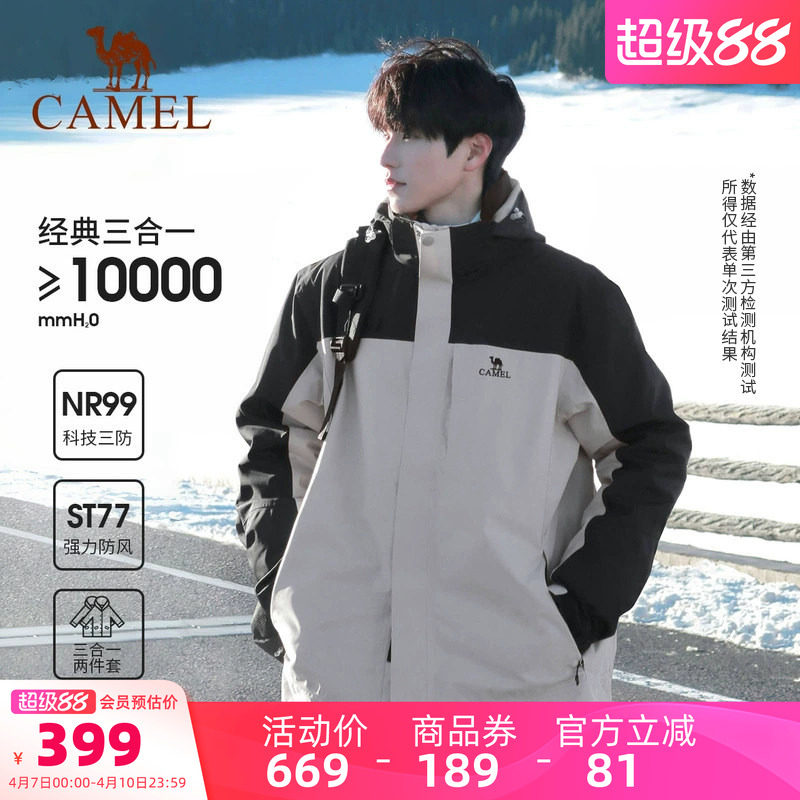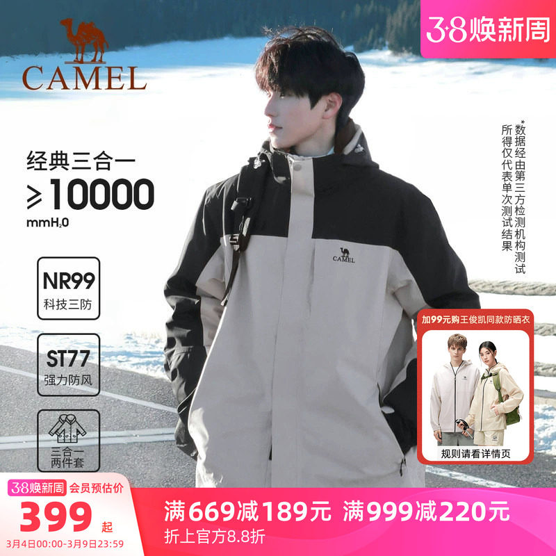 Camel outdoor rain god jacket men's three-in-one spring windproof waterproof jacket women's three-proof travel mountaineering suit