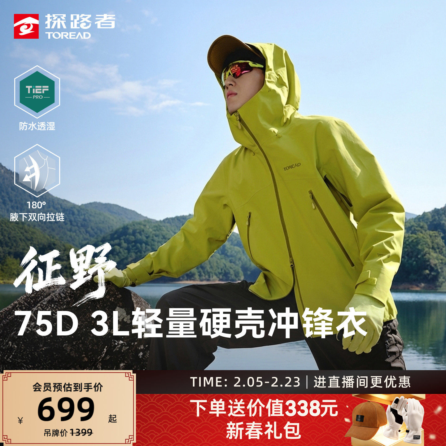 Pathfinder 3L Glued Hard Shell Single Stroke Men's Windproof and Waterproof Jacket Outdoor Hiking Clothing Women