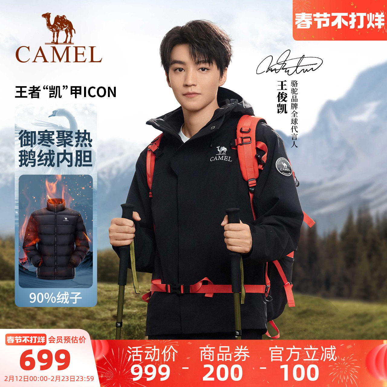 Camel jacket three-in-one goose down jacket king Kaijia ICON men's and women's new windproof waterproof jacket winter