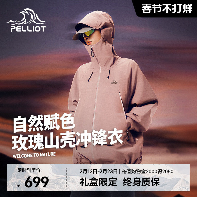 【Rose Mountain Shell】Bo Xi and outdoor pink hard shell jacket women's new fully pressed windproof mountaineering suit for men
