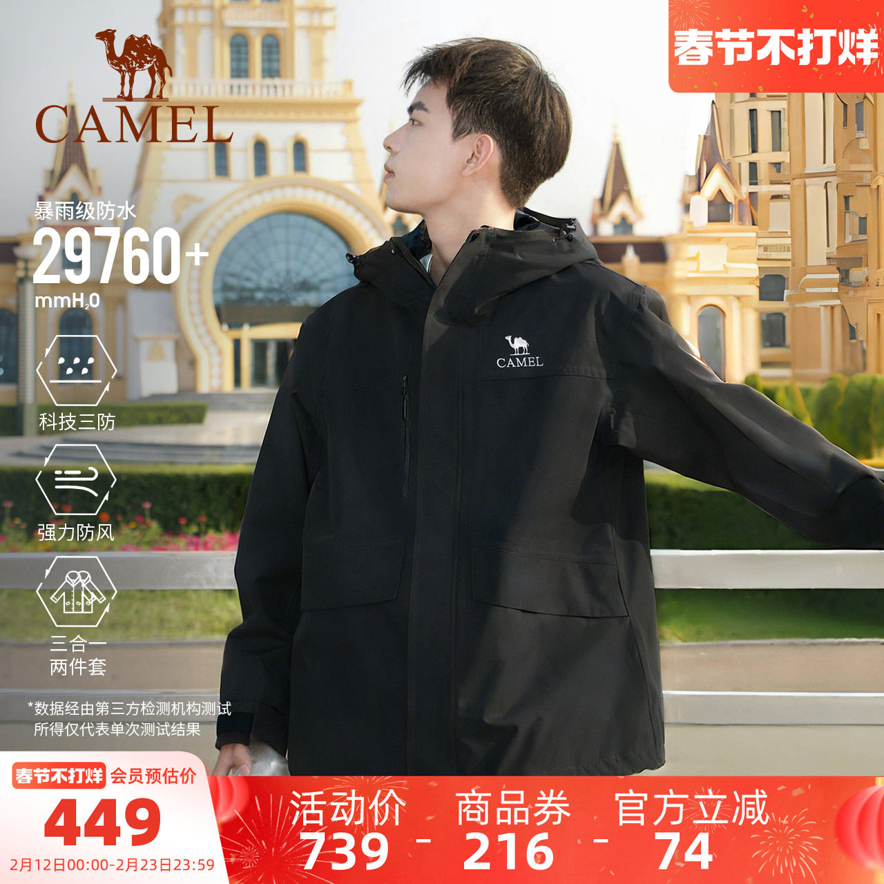 Camel outdoor three-in-one rock field jacket men's and women's windproof waterproof jacket Tibetan travel hiking and hiking clothes
