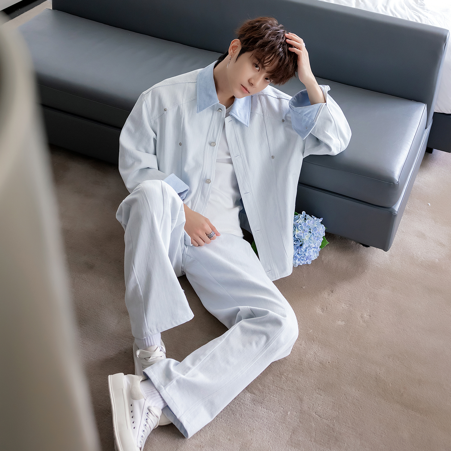CHICERRO Sicilian men's design denim suit men's high-end sense autumn boys' cool and handsome outfit set