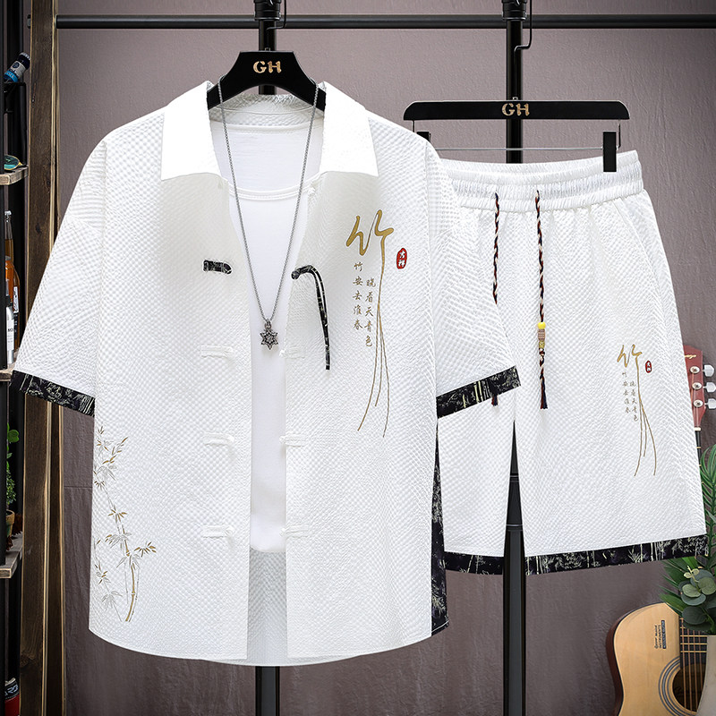 Summer ice silk suit men's national trendy style thin quick-drying new Chinese short-sleeved shirt shorts fashionable casual two-piece set
