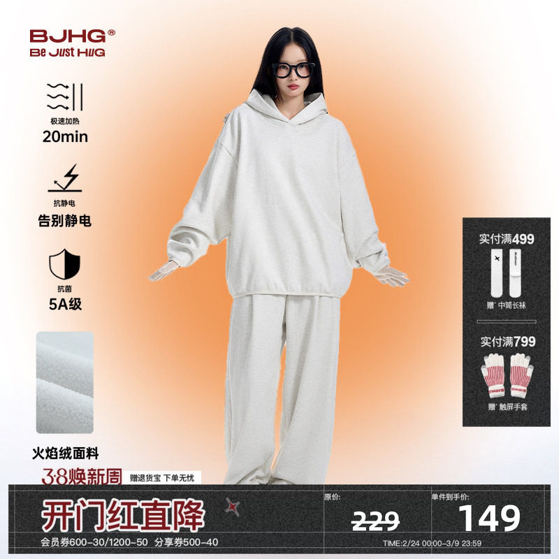 BJHG reckless antibacterial sports suit men's spring couple hooded casual sweatshirt and pants women