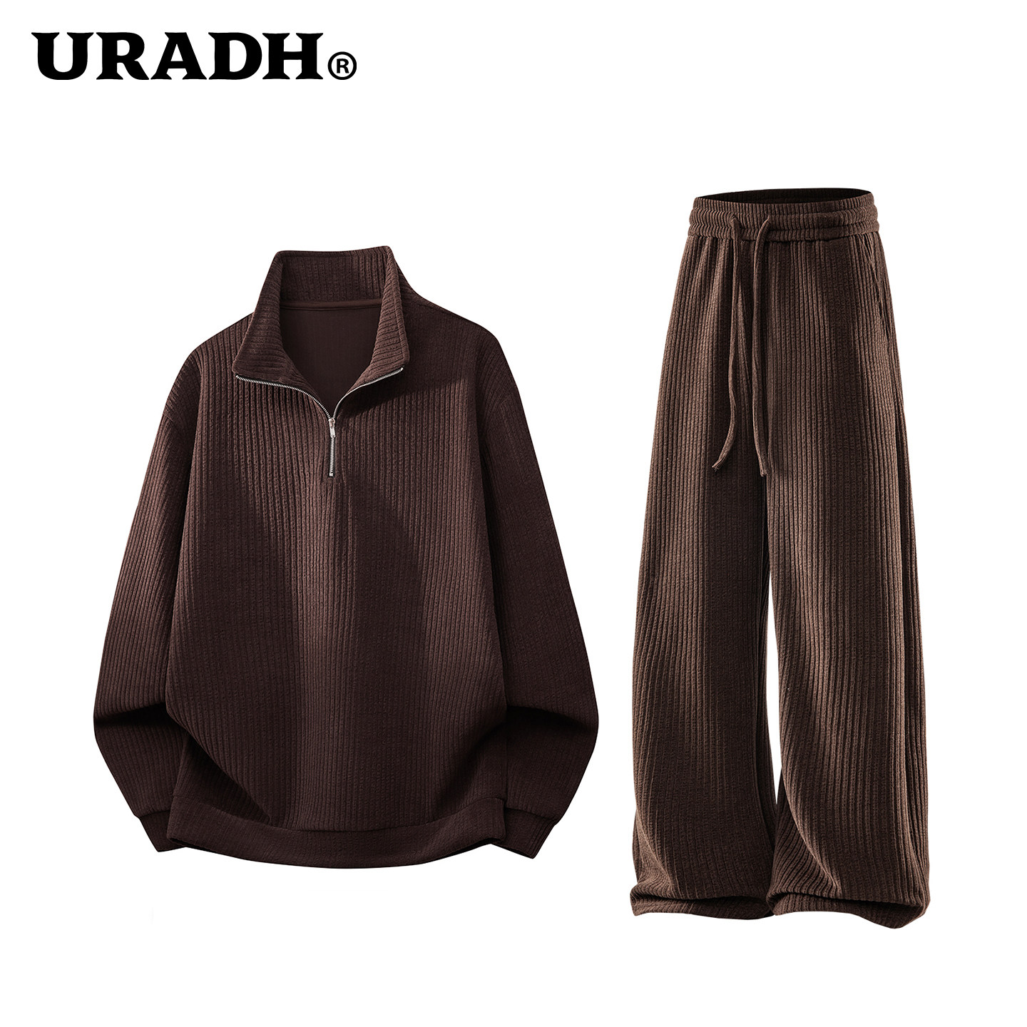 Basic Unit Stand up collar striped casual suit jacket top spring trousers two-piece men's set