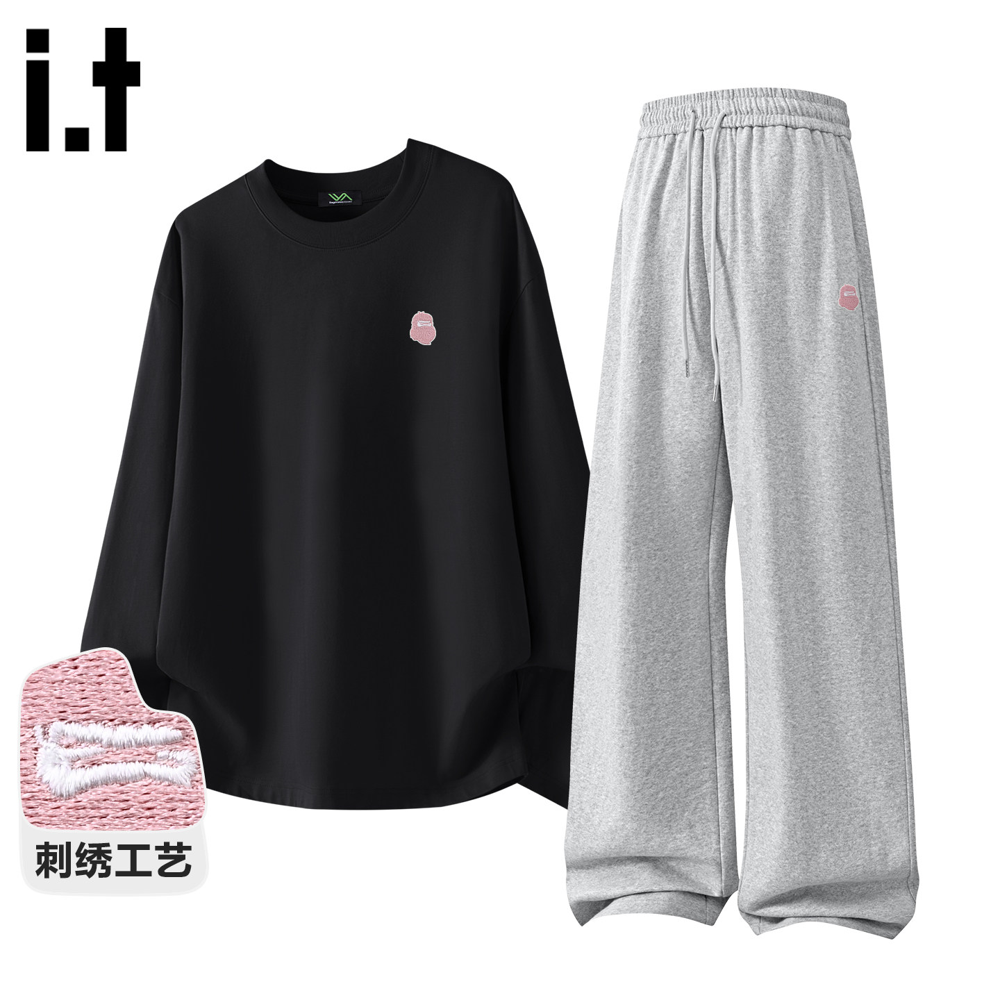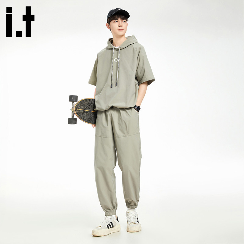 i.t OVER PROTECTION Hooded drawstring short-sleeved T-shirt set men's summer wide-leg corset long pants O