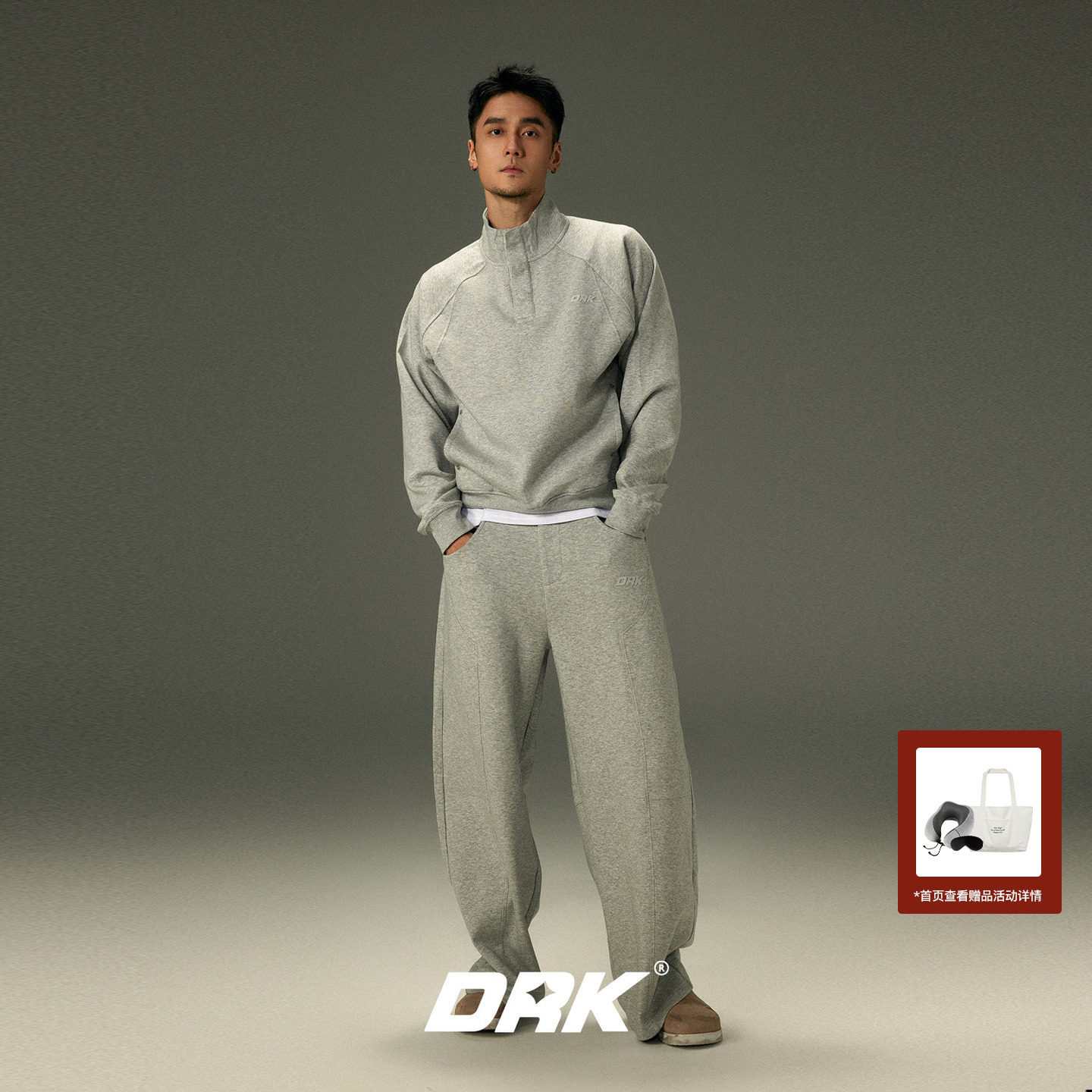 DRK magnetic buckle stand-up collar sweatshirt set for men and women autumn and winter tops trendy brand cleanfit casual sweatpants