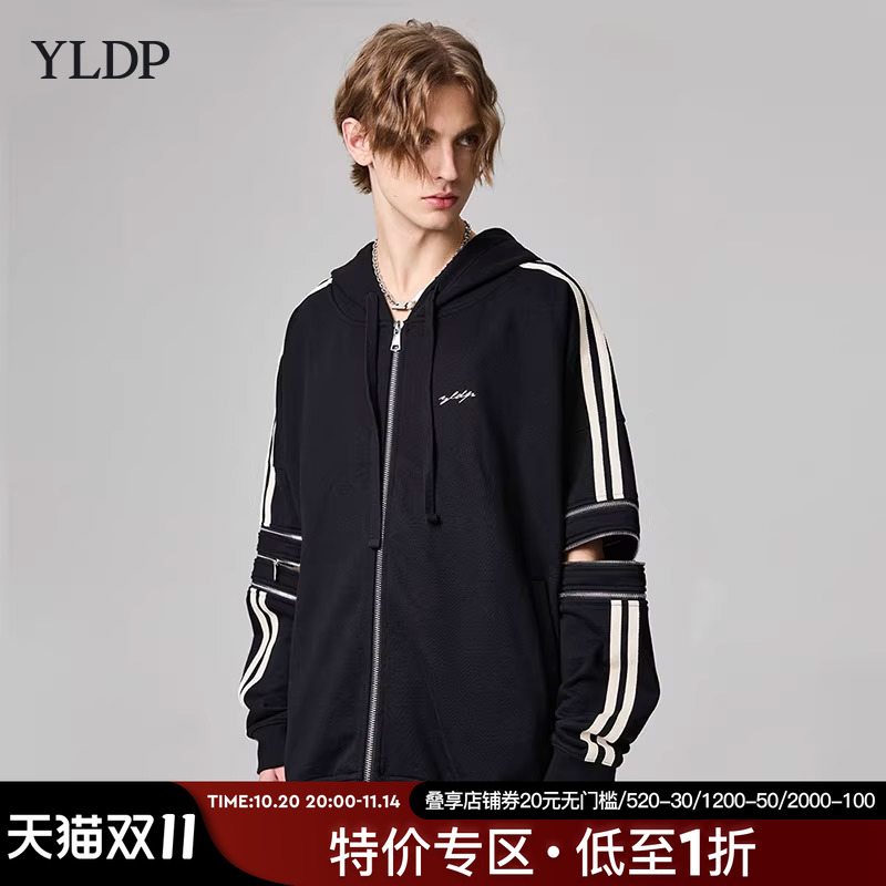 YLDP star same high street silhouette zipper embellishment hooded sportssuit black and white genderless unisex style