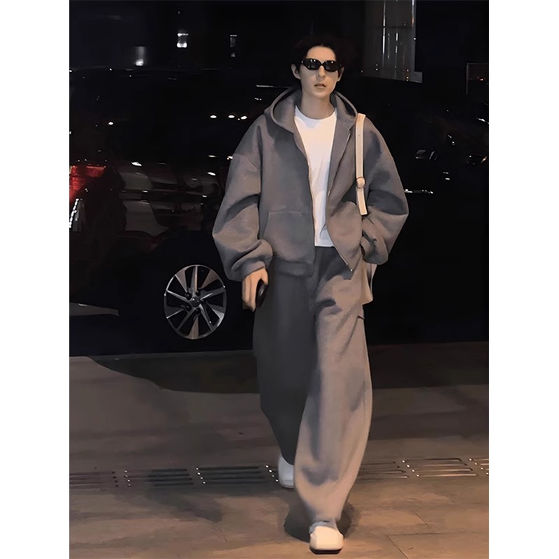 South Korea's WEN NIAN autumn suit men's American cleanfit sweatshirt high-end sense ruffian handsome wearing cardigan jacket