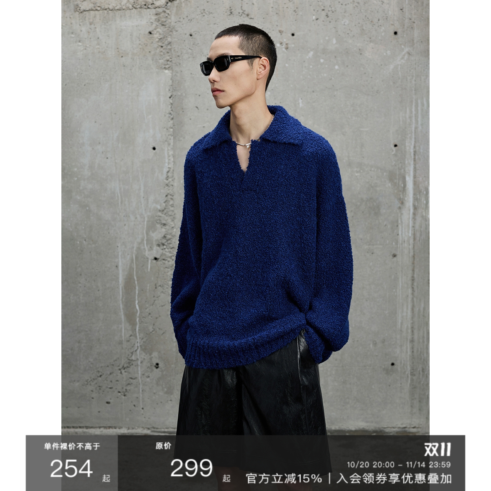 【NANS】Sully alpaca blend fluffy coarse support loop yarn basic silhouette long sleeve POLO/V-neck vest