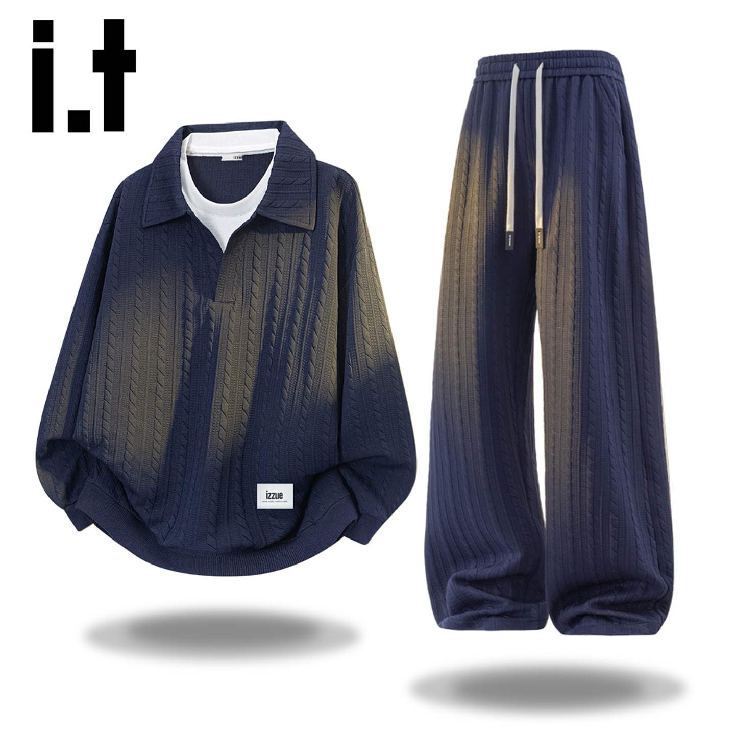 it izzue American Relaxed Texture Sportssuit Men's Fall 2025 Knit Casual Two-Piece Y